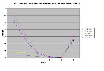 ext3 have serious problems splitting files into small pieces, while JFS,
