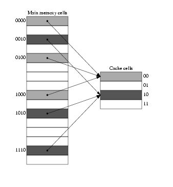 Address of cache cell = (Address of RAM cell) modulus (total number of cache cells)