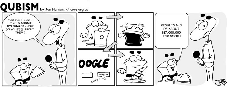 [BIO] Jon is the creator of the Qubism cartoon strip and current Editor-in-Chief of the CORE News Site. Somewhere along the early stages of his life he picked up a pencil and started drawing on the wallpaper. Now his cartoons appear 5 days a week on-line, go figure. He confesses to owning a Mac but swears it is for "personal use".
