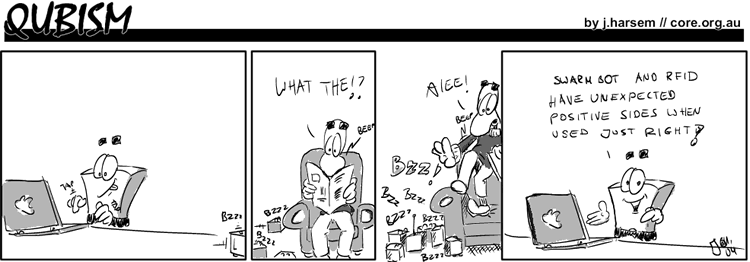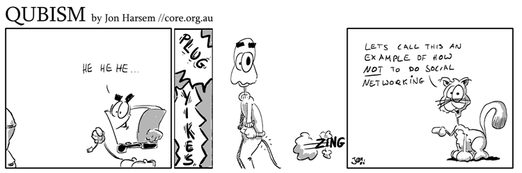 [BIO] Jon is the creator of the Qubism cartoon strip and current Editor-in-Chief of the CORE News Site. Somewhere along the early stages of his life he picked up a pencil and started drawing on the wallpaper. Now his cartoons appear 5 days a week on-line, go figure. He confesses to owning a Mac but swears it is for "personal use".