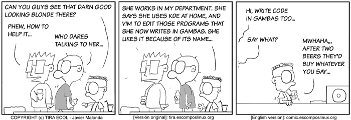 All Ecol cartoons are at tira.escomposlinux.org (Spanish), comic.escomposlinux.org (English) and http://tira.puntbarra.com/ (Catalan). The Catalan version is translated by the people who run the site; only a few episodes are currently available.