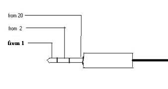 The connection to the speaker plug is as shown in the figure. The resistors used here are 1k ohm, 1/4 watt resistors. (If these exact values are not available, try something that's reasonably close; the values are not critical).