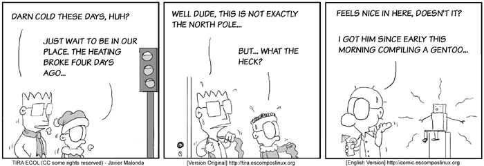 All Ecol cartoons are at tira.escomposlinux.org (Spanish), comic.escomposlinux.org (English) and http://tira.puntbarra.com/ (Catalan). The Catalan version is translated by the people who run the site; only a few episodes are currently available.
