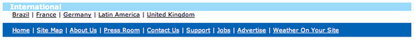 Oddly enough, we've gotten so used to information overload that (most of the time) we can focus on what's important to us, even in a page as complex as this one. On the other hand, why should we have to? Why does every page have to have access to every other possible page in the site? By my count, there are links to over one hundred other internal pages on that one weather.com page. That's like putting the entire table of contents on every page of a book, just in case...
