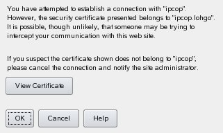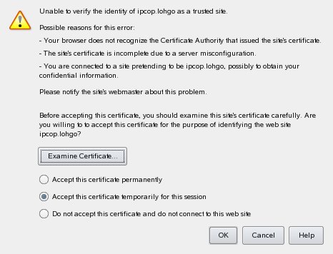 Since we are sitting right next to the IP Cop machine, we know that the identity is correct and it's safe to permanently accept the certificate.