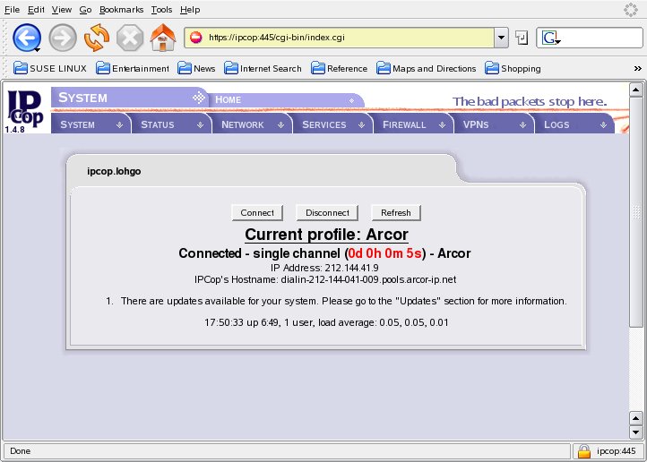 Besides offering almost no services outside, IP Cop strictly limits what root and admin can do. As root, one can log on to the PC on which IP Cop is running, but can only adjust a few things originally set up during the installation, as in ISDN vs modem and the like.