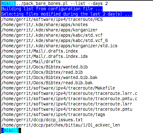 To take home (on the USB stick) all tracked files home that changed during the last x days, the script is called with the --days x option.