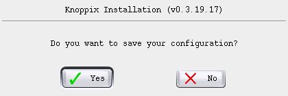Yes, do save the configuration (otherwise, Knoppix bails out.)
