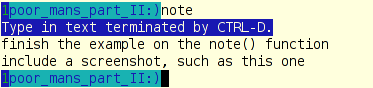 Palmtops are horribly and unnecessarily expensive. Let's code a part of their luxuriant functionality by storing notes in $confdir; here is an example screenshot. Since there are so many scripts already, a (bash) shell function is used for a change: