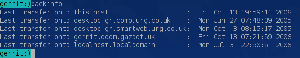 With pack --info, you can see timestamps of all hosts you use; here is an example screenshot. (The script recognises which timestamp is local.) To bootstrap this mechanism, the --days x option is still needed - once, for initial creation of timestamps.