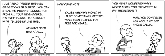 The Ecol comic strip is written for escomposlinux.org (ECOL), the web site that supports es.comp.os.linux, the Spanish USENET newsgroup for Linux. The strips are drawn in Spanish and then translated to English by the author.These images are scaled down to minimize horizontal scrolling.