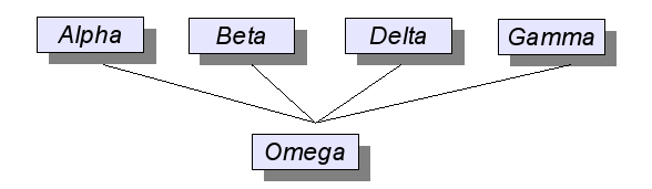 1. Alpha, Beta, Delta, Gamma, and Omega are servers.