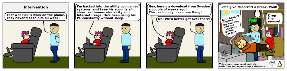 The webcomic Doomed to Obscurity was launched New Year's Day, 2009, as a "New Year's surprise". He has since rigorously stuck to a posting schedule of "every odd-numbered calendar day", which allows him to keep a steady pace without tiring. The tagline for the webcomic states that it "gives the geek culture just what it deserves." But is it skewering everybody but the geek culture, or lampooning geek culture itself, or doing both by turns?
