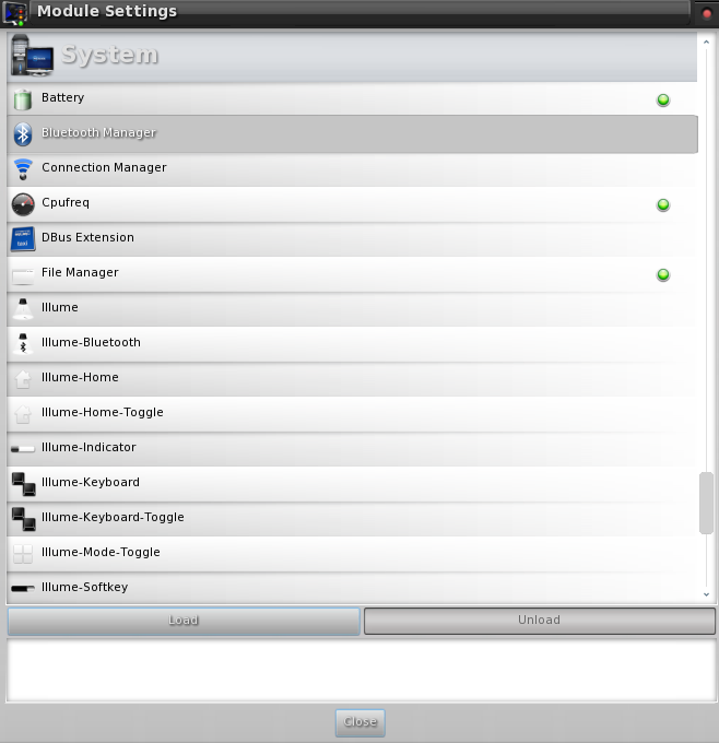 Not using some of the features E17 has and don't want them taking up unnecessary resources? Not a problem! E17 allows you to easily load and unload each and every part (module) of the desktop through the configuration menu. This way, only the parts of the system you are using are loaded at start-up.
