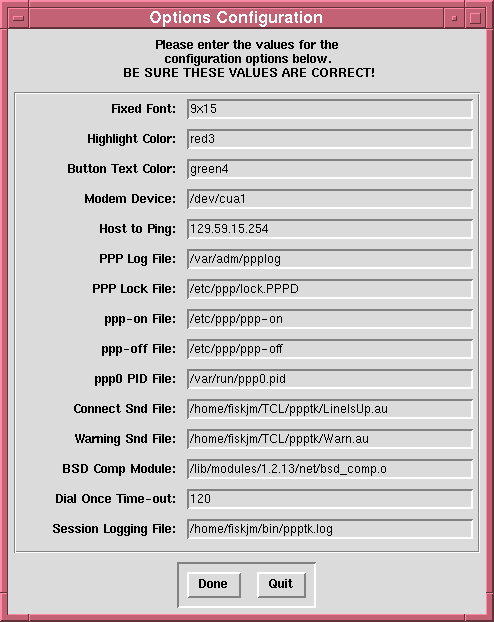 I've been using a series of BASH shell scripts to set up a PPP connection but after school ended in June, I really wanted to create a Tcl/Tk front end for all of this stuff. The features that I wanted included: