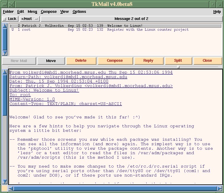 Many of the X-windows mailers I've tried have either been too basic, too beta, or awkward to use. I've always returned to Pine, my standby. Recently two X-based mailers have been released (in late beta versions), both of which are stable and well-provided with features and options. When I say stable I mean that they have functioned well for me, I haven't lost any mail, and they both have been through several releases in which the most egregious bugs seem to have been ironed out.