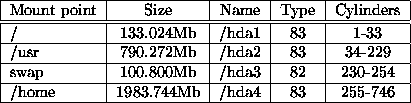 I've used a 3.0Gb harddisk, 746 cylinders, I created 4 partitions. The