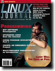 The May issue of Linux Journal will be hitting the newsstands April 12. This issue focuses on Programming with an interview with Larry Wall, the guru of Perl. Linux Journal now has articles that appear "Strictly On-Line". Check out the Table of Contents at http://www.linuxjournal.com/issue61/index.html for articles in this issue as well as links to the on-line articles. To subscribe to Linux Journal, go to http://www.linuxjournal.com/ljsubsorder.html.