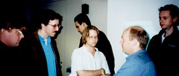 guy in the middle is Matthew Hunt, President of the Linux Users of NY