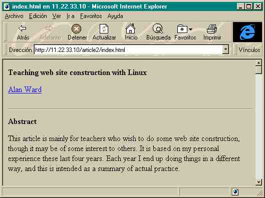 Another point that can be made -- and that I had pointed out to me by students -- is the use of an FTP client. Web maintenance is something I like to speak about in my classes. However most maintenance is done nowadays through the use of FTP to upload pages to the server. As you may know, Microsoft Frontpage uses the local network to upload pages directly on a local server, while a Linux+Apache server almost always has a FTP server running, just like a "big" Unix box.