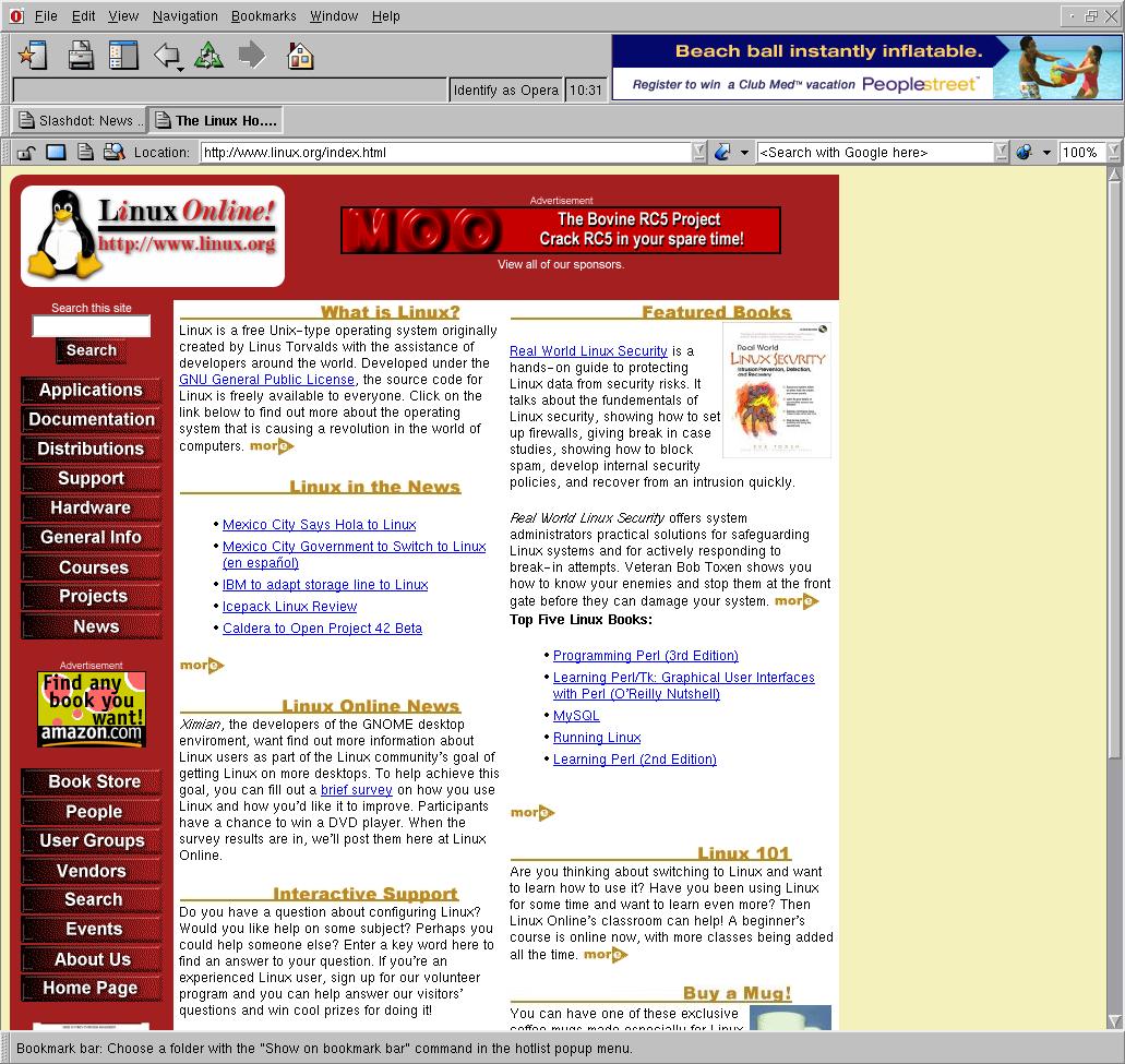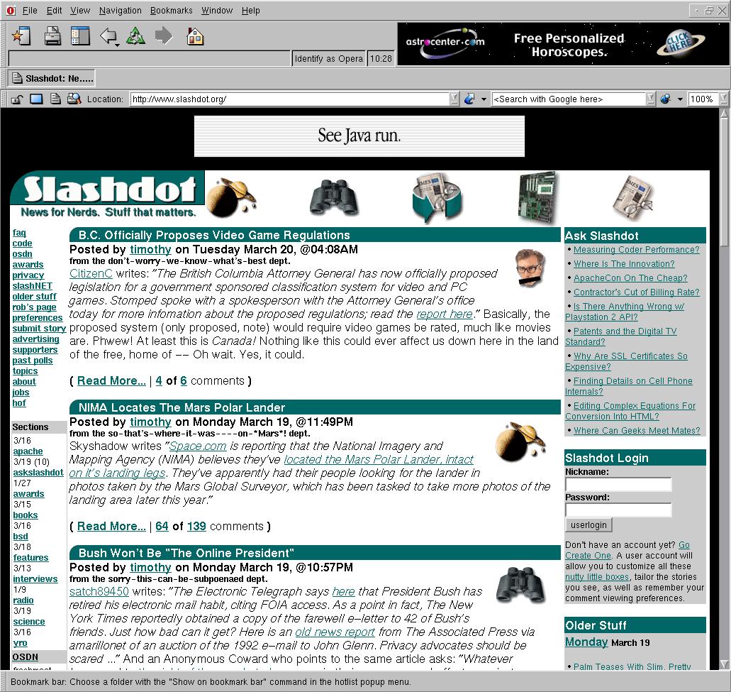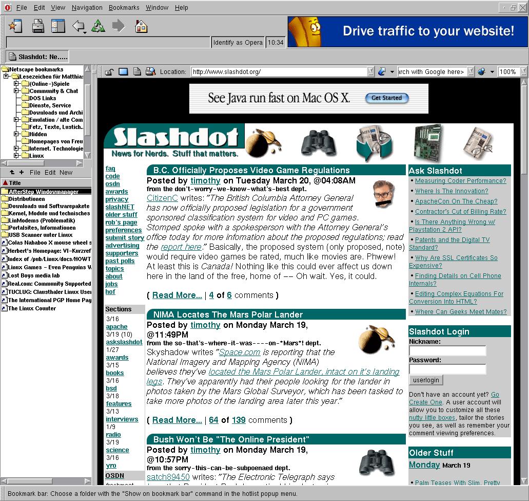 Opera - as seen when started, browsing Slashdot [237 KB]