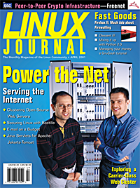 The April issue of Linux Journal is on newsstands now. This issue focuses on Internet/Intranet. Click here to view the table of contents, or here to subscribe. All articles through December 1999 are available for public reading at http://www.linuxjournal.com/lj-issues/mags.html. Recent articles are available on-line for subscribers only at http://interactive.linuxjournal.com/.
