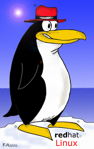 Debian Geek: Debian is seen as the real hackers distro. The character I drew is based on the hard core hacker. He is poor and wears daggy clothes because thats all he can afford. He tends to have long hair thats tied back and usually has that tough distinctive goaty or unshaven look.