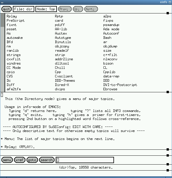 info, the mother of all Info browsers, is a simple but