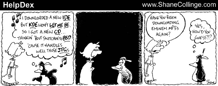 Recent HelpDex cartoons are at Shane's web site, www.shanecollinge.com, on the Linux page.