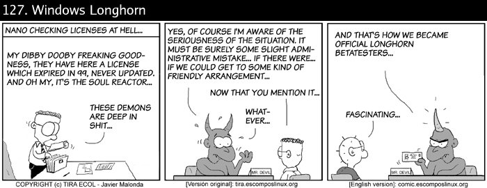 The Ecol comic strip is written for escomposlinux.org (ECOL), the web site tha t supports, es.comp.os.linux, the Spanish USENET newsgroup for Linux. The strips are drawn in Spanish and then translated to English by the author.