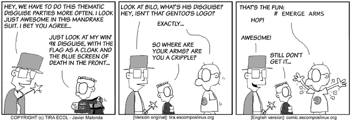 The Ecol comic strip is written for escomposlinux.org (ECOL), the web site tha t supports, es.comp.os.linux, the Spanish USENET newsgroup for Linux. The strips are drawn in Spanish and then translated to English by the author.